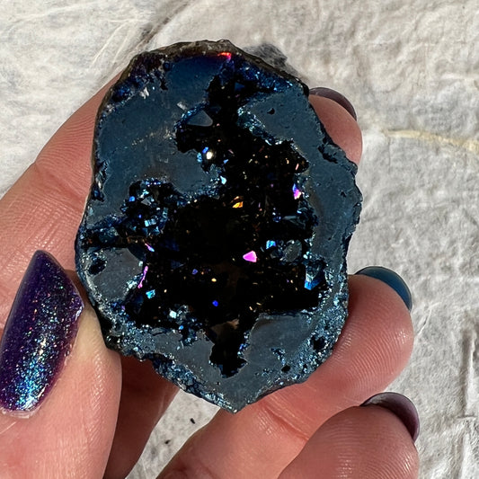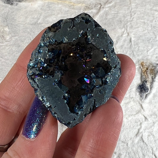 Aura Quartz is renowned for its vibrant, high vibrational energy that enhances spiritual growth and protection. It is believed to stimulate creativity, clarity, and mental focus while balancing and energising the chakras. This crystal aids in connecting with higher realms, amplifying intuition, and clearing negative energies. Titanium Aura Quartz supports emotional healing, resilience and personal transformation by fostering a sense of empowerment and inner strength.
