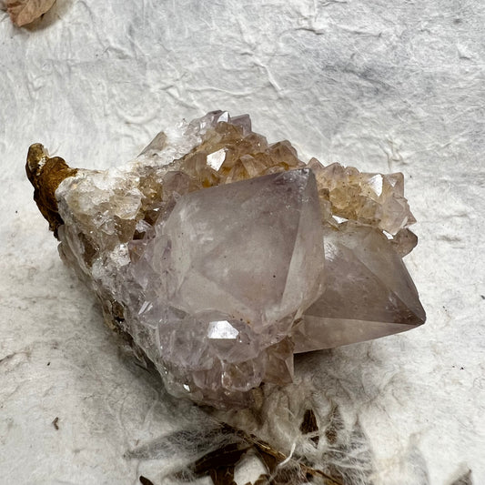 Clear Quartz, otherwise known as ’The Master Healer’. It is said to amplify energy by absorbing, storing, releasing and regulating it. It is also said to aid concentration and memory.