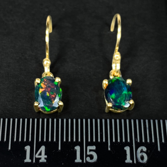 18k Gold Vermeil Black Opal Earrings
