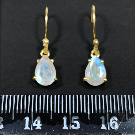 18k Gold Vermeil Faceted Rainbow Moonstone Earrings