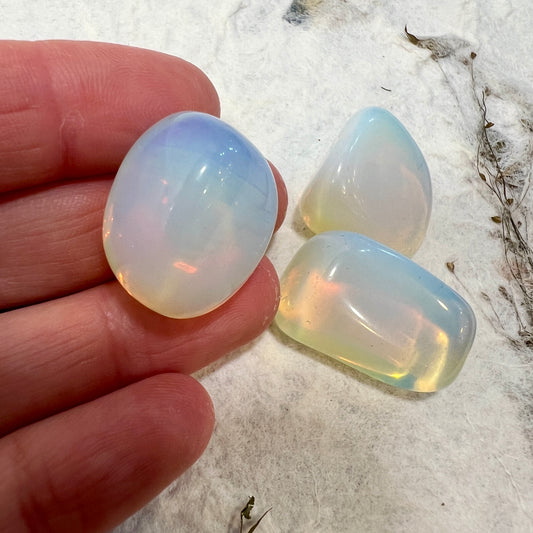 Opalite is believed to support the manifestation of dreams and goals, encouraging confidence and positive action. Its gentle, uplifting energy helps ease emotional turbulence and bring calm during times of change. Often associated with smooth transitions, Opalite promotes inner peace, clarity, and a hopeful outlook for new beginnings.