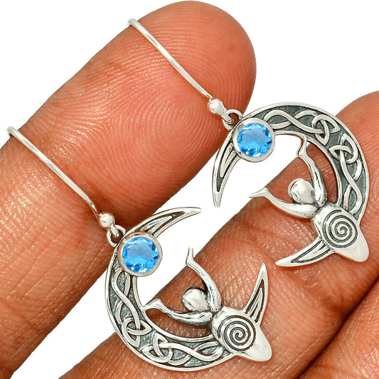 Sterling Silver Blue Topaz Celtic Goddess Moon Earrings