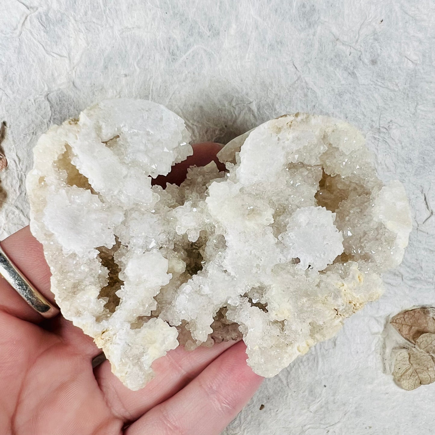 Quartz Crystal druzy hearts possess powerful spiritual properties. They are believed to enhance spiritual awareness, amplify positive energies and promote emotional healing.
