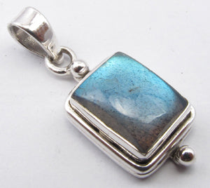 Beautiful Labradorite Sterling Silver Pendant with Sterling Silver Box Chain (adjustable 16-18 inches long)