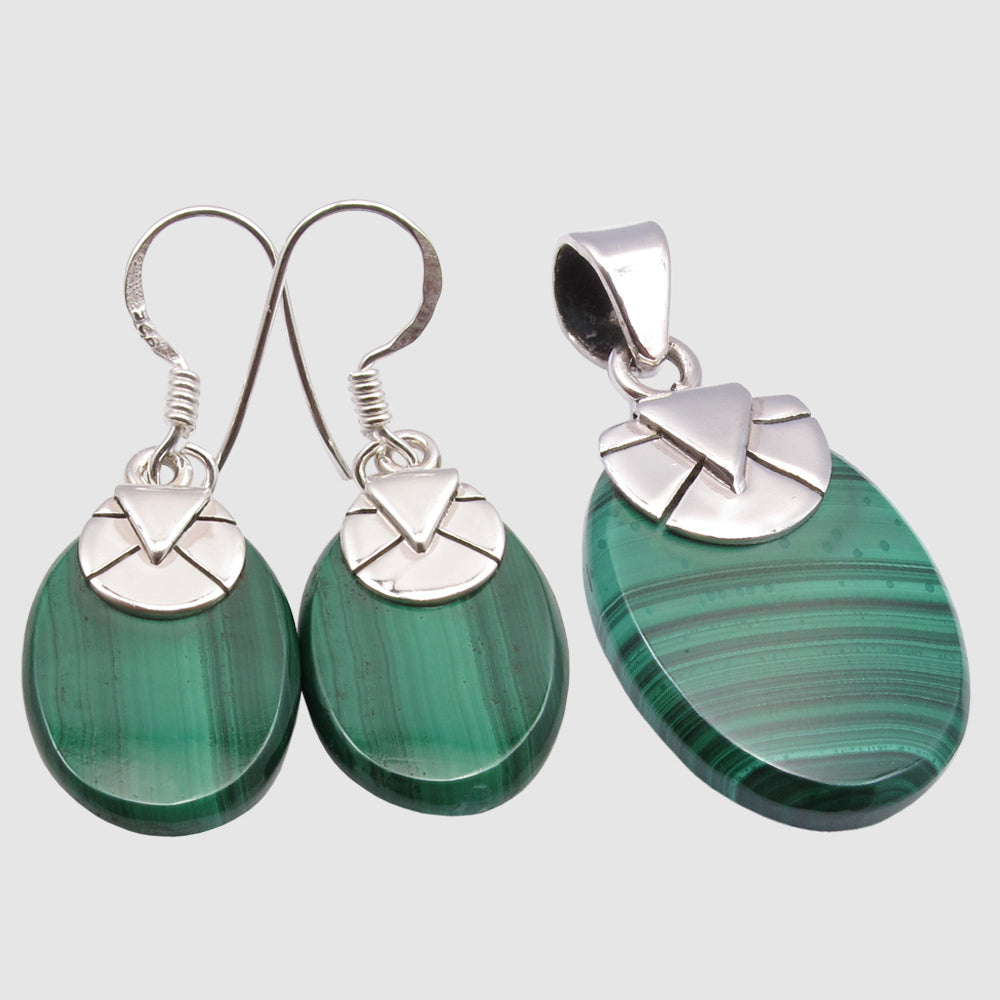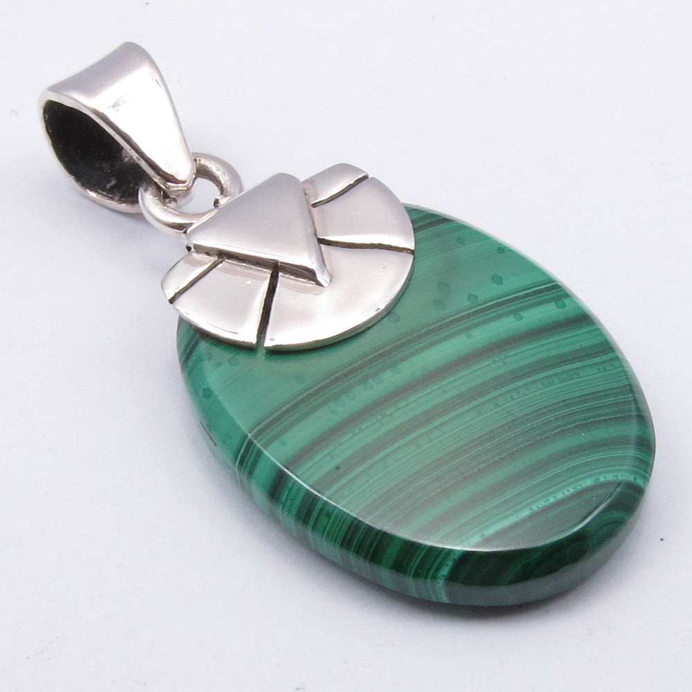 Beautiful Malachite Sterling Silver Pendant with Sterling Silver Box Chain (18 inches long)